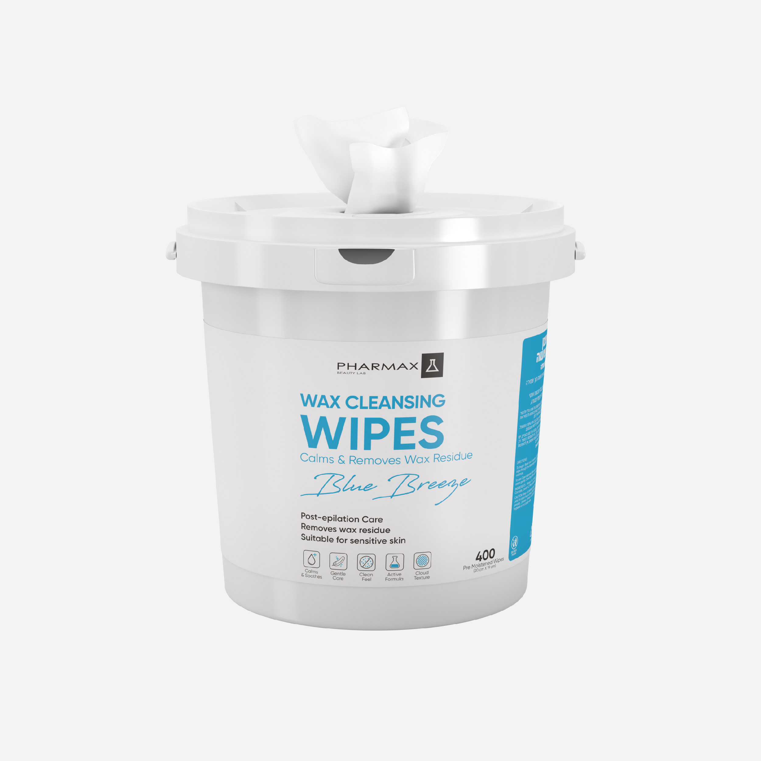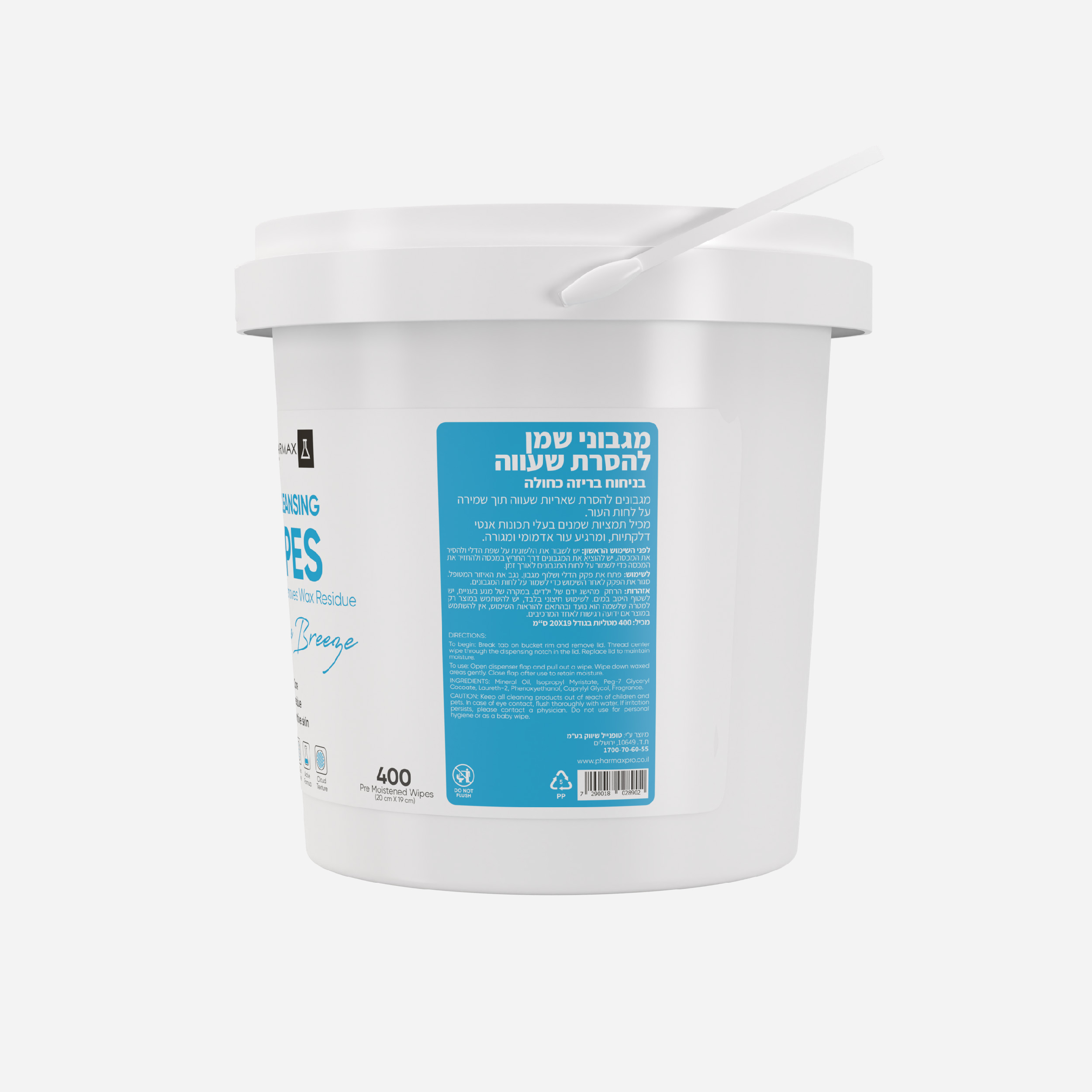מגבונים להסרת שאריות שעווה תוך שמירה על לחות העור. בניחוח בריזה כחולה
