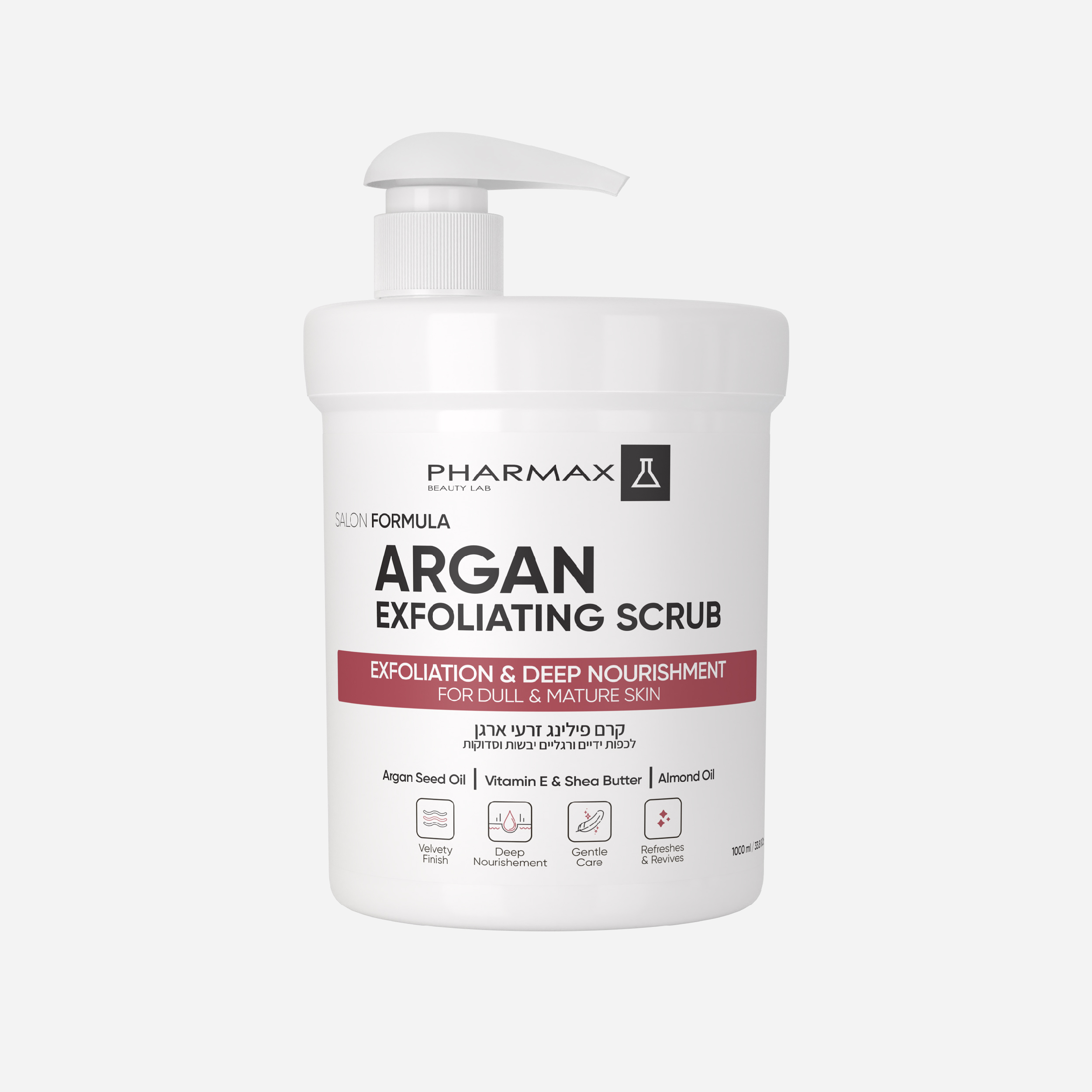 קרם פילינג לכף היד והרגל על בסיס זרעי ארגן – להסרת יעילה של תאי עור מתים ולניקוי יסודי של העור. מועשר בשמן ארגן, חמאת שיאה וויטמין E להזנה אינטנסיבית של עור יבש וסדוק. מעניק הרגשת רעננות ומראה עור רך ונעים למגע.